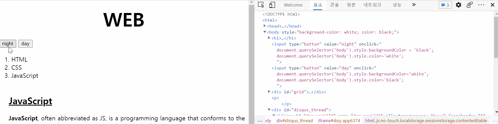 → 위의 예시에서 사용자가 누르는 버튼에 따라 body의 style 속성값이 바뀐다.