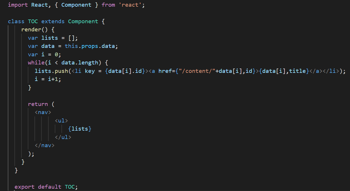 → App의 state값 중 contents의 목록을 추가하거나 제거해도 TOC component를 직접 수정할 필요 없이