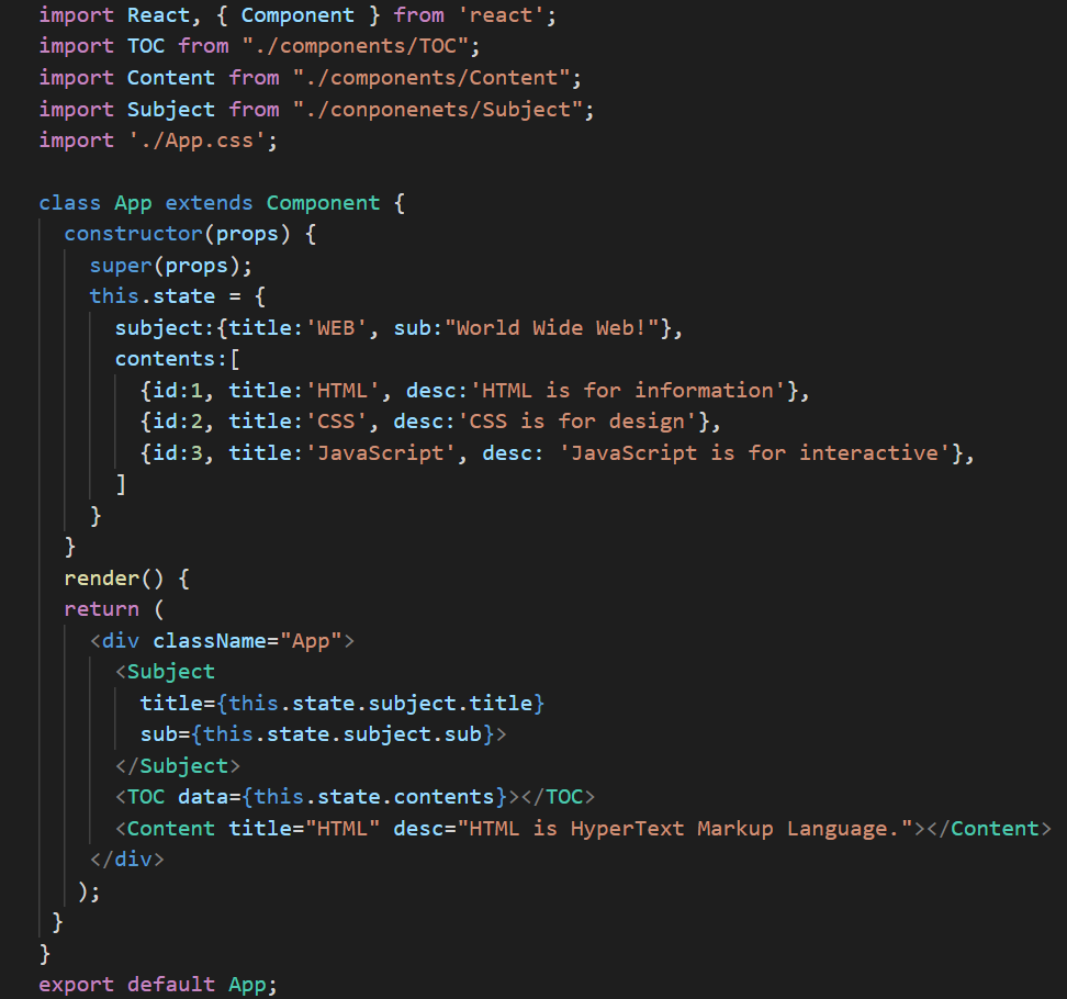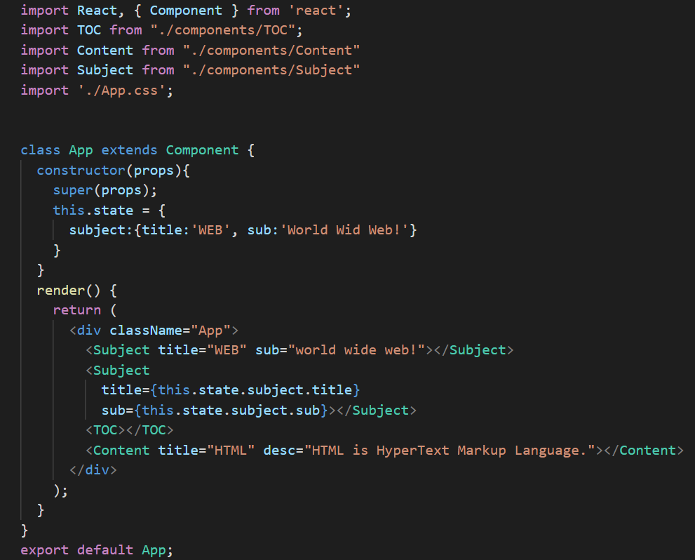 → App component의 state값을 Subject component의 props값으로 준다.