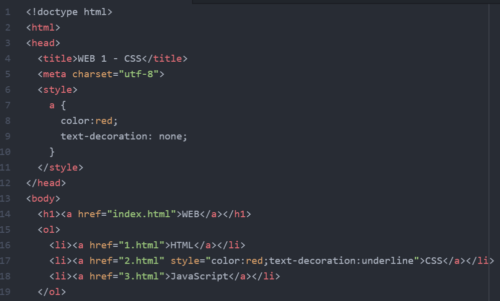 <li><a href="2.html" style="color:red;text-decoration:underline">CSS</a></li>