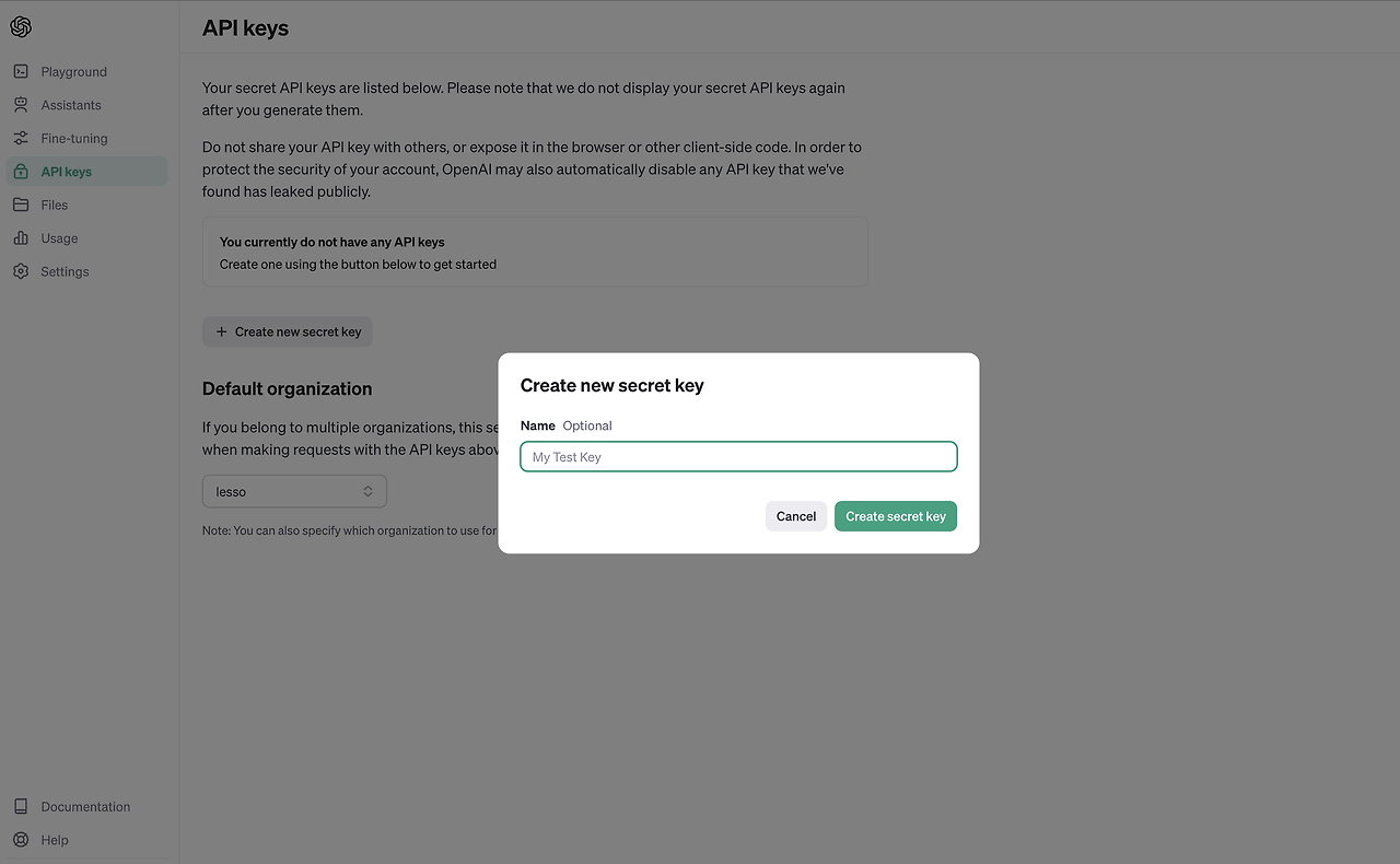 2-2. OpenAI API Key 발급 및 프로젝트 설정
