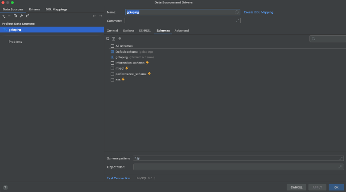 만약 해당 RDS를 눌러도 생성해준 Database(스키마)가 목록에 뜨지 않는다면 DB 우클릭 > Properties에 들어가 Schema 메뉴에 들어가보자. 목록에 어떤 스키마를 노출시킬 것인지 선택할 수 있으니, 원하는 스키마를 체크해 노출시킬 수 있다.
