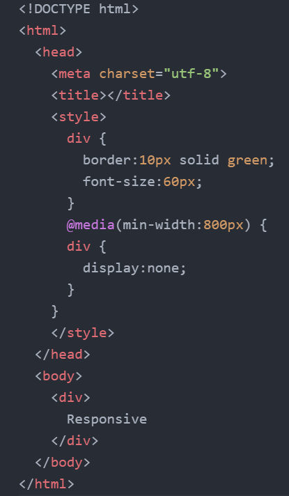 +) max-width:800px; -> 최대 폭이 800px을 만족할 때, 즉 폭이 800px보다 작으면 display:none; 실행